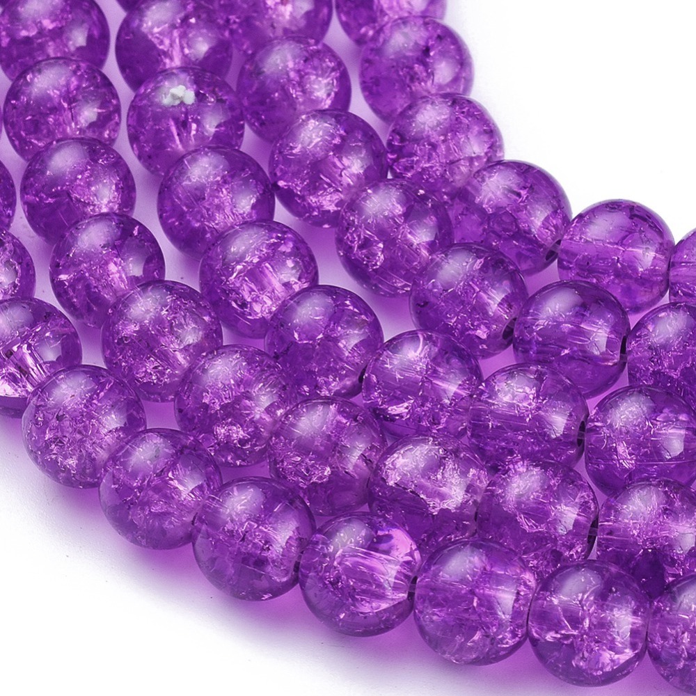 Crackle Glass Beads Strands, Round, Blue Violet, 6mm, Hole: 1.3~1.6mm