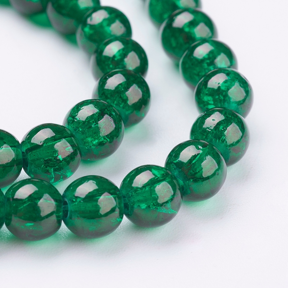 Crackle Glass Beads Strands, Round, Dark Green, 6mm, Hole: 1.3~1.6mm
