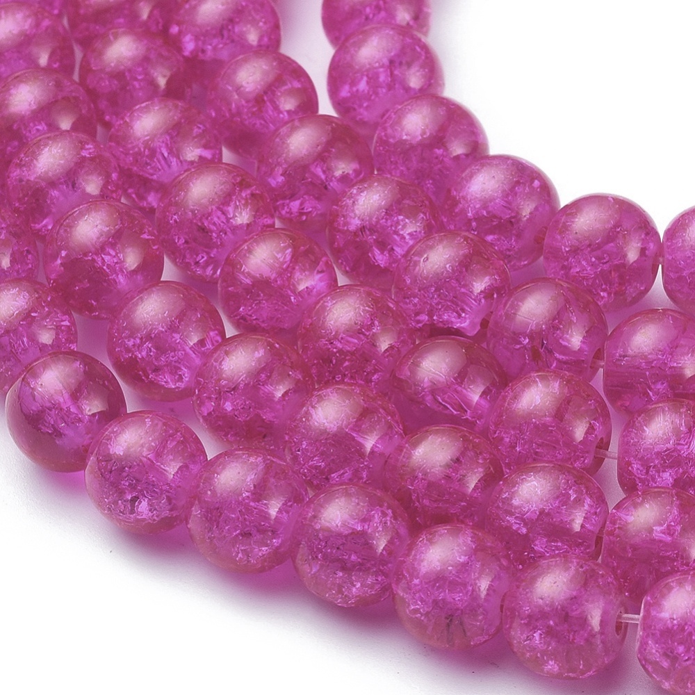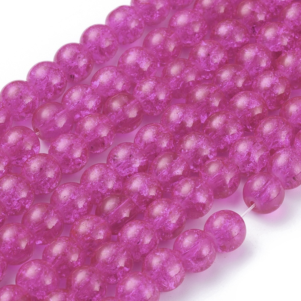 Crackle Glass Beads Strands, Round, Fushsia, 6mm, Hole: 1.3~1.6mm