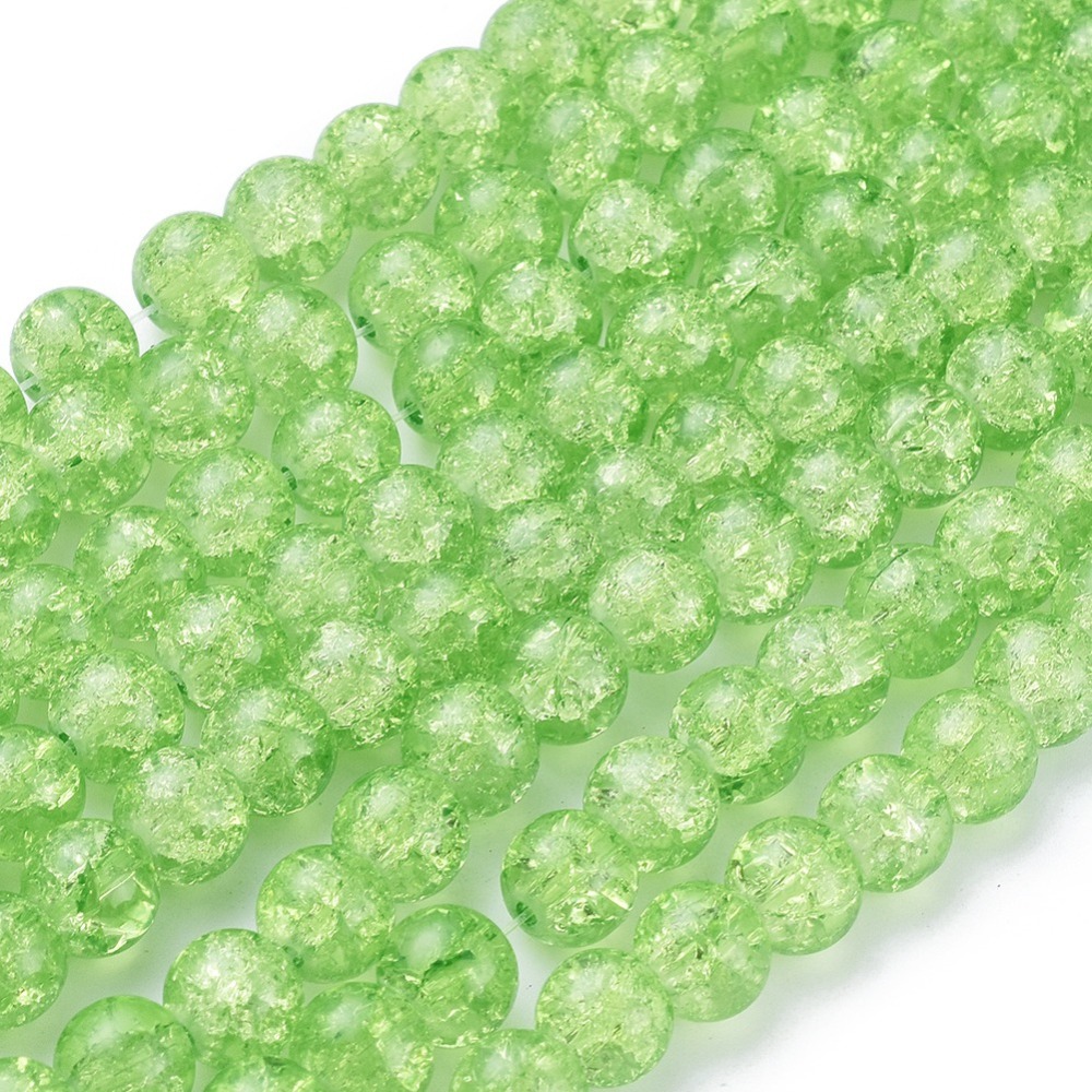 Crackle Glass Beads Strands, Round, Pale Green, 6mm, Hole: 1.3~1.6mm