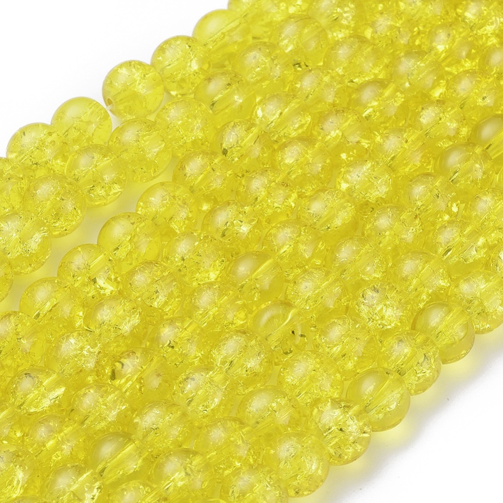 Crackle Glass Beads Strands, Round, Yellow, clear, 6mm, Hole: 1.3~1.6mm