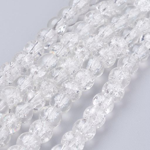 Crackle Glass Beads Strands, Round, Clear, 8mm, Hole: 1.3~1.6mm