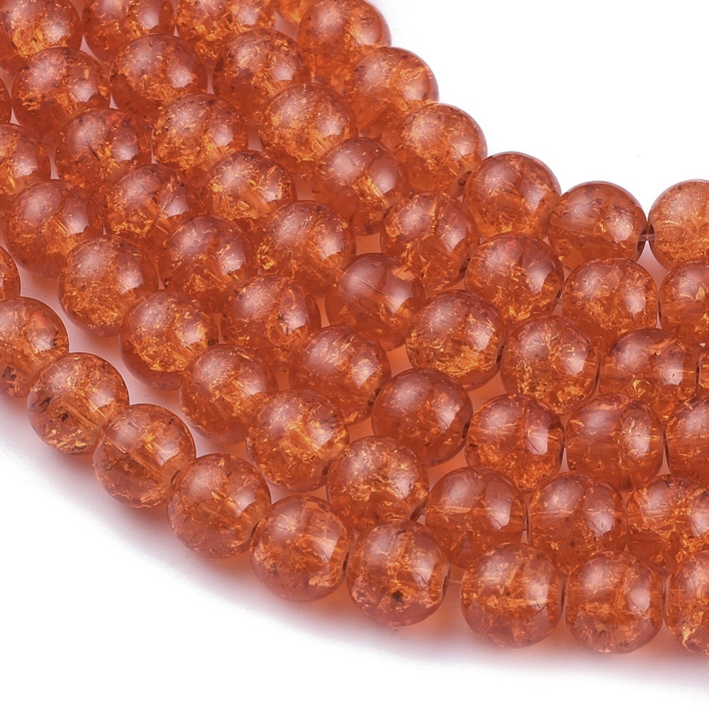 Crackle Glass Beads Strands, Round, Dark Orange, 8mm, Hole: 1.3~1.6mm