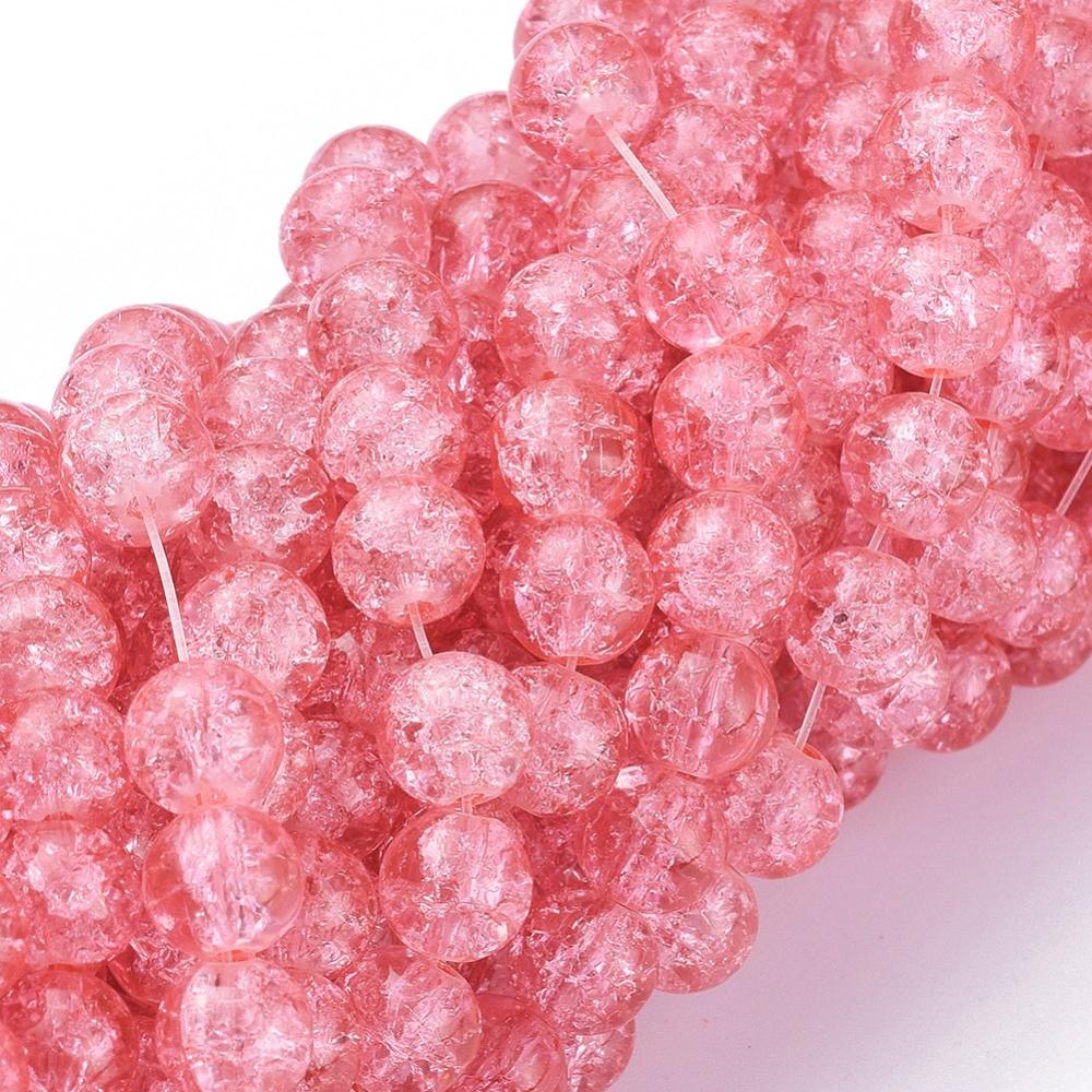 Crackle Glass Beads Strands, Round, Salmon, 8mm, Hole: 1.3~1.6mm