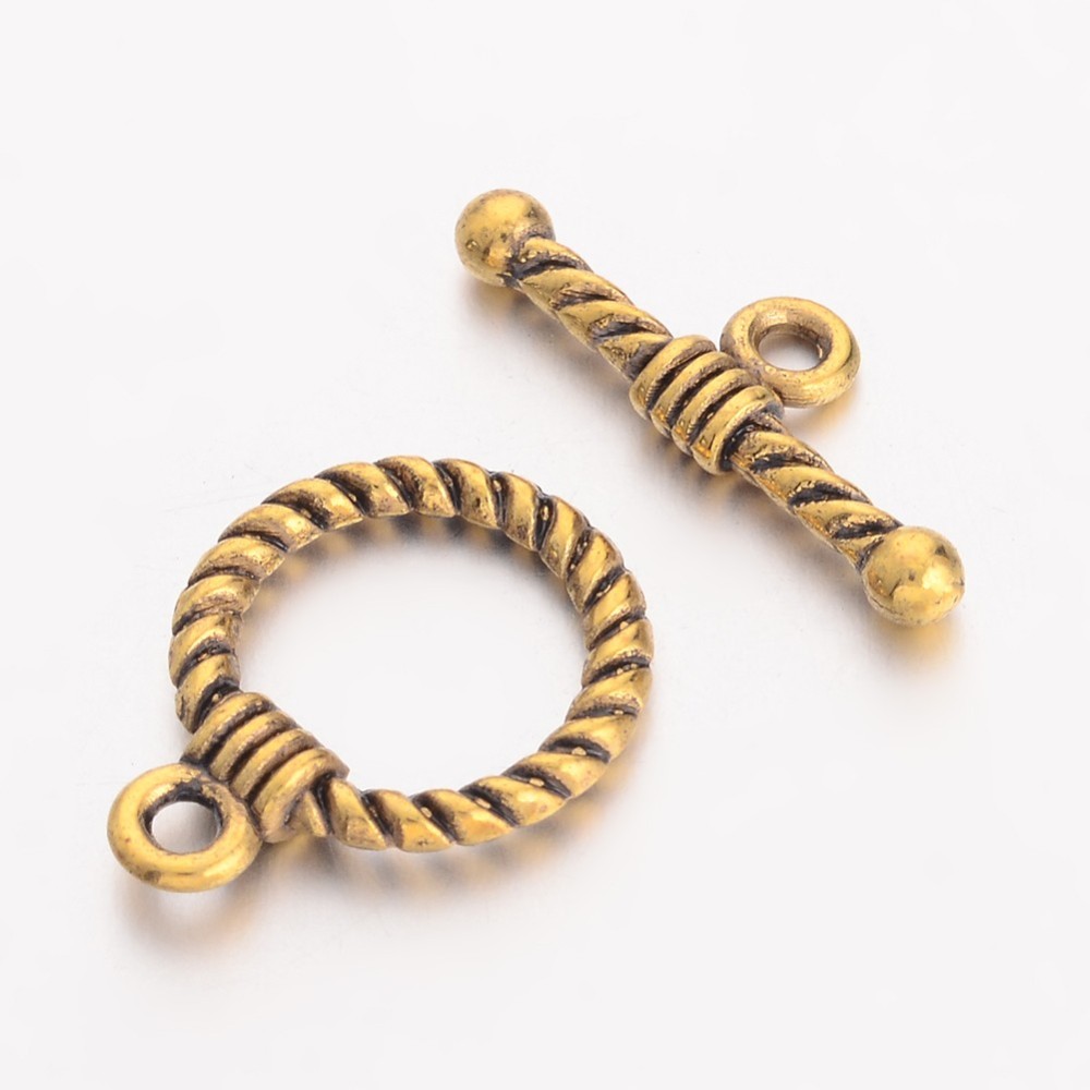 Tibetan Style Alloy Toggle Clasps, Lead Free and Cadmium Free, Round, Antique Golden Round: 19x14x3mm, Hole: 2mm, Bar: 20x8x3mm, Hole: 2mm