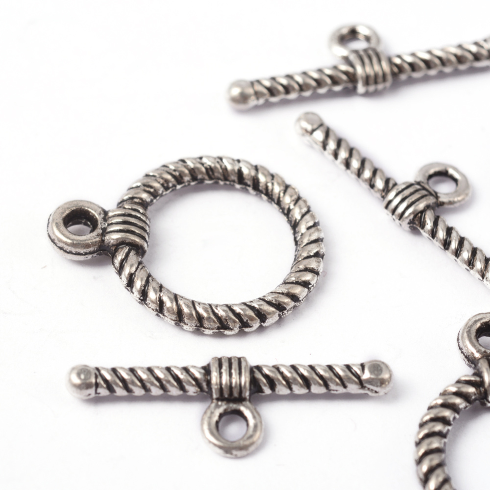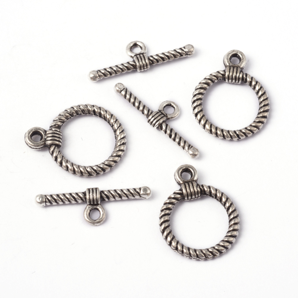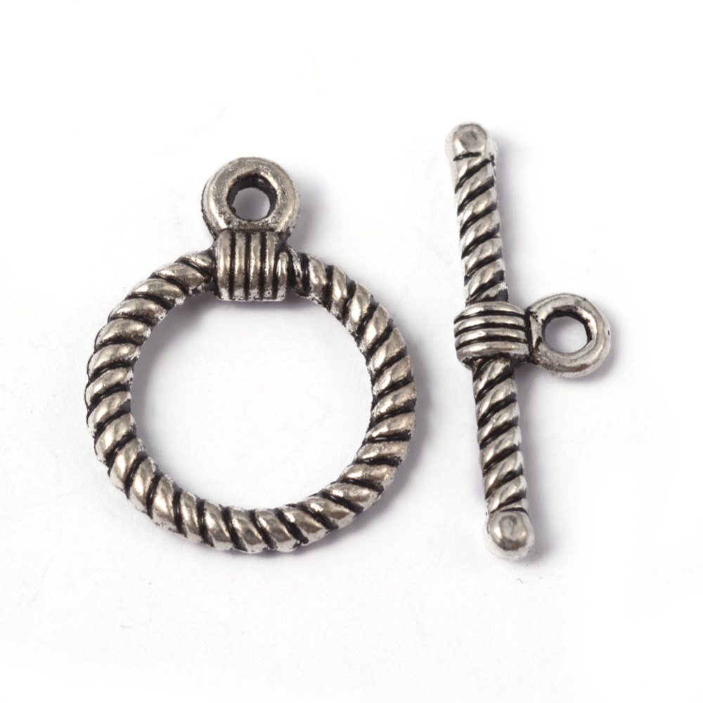 Tibetan Style Toggle Clasps, Cadmium Free & Nickel Free & Lead Free, Antique Silver, Ring: 22.5x17.5x3.5mm, Hole: 2mm; Bar: 25.5x8x3mm, Hole: 2mm