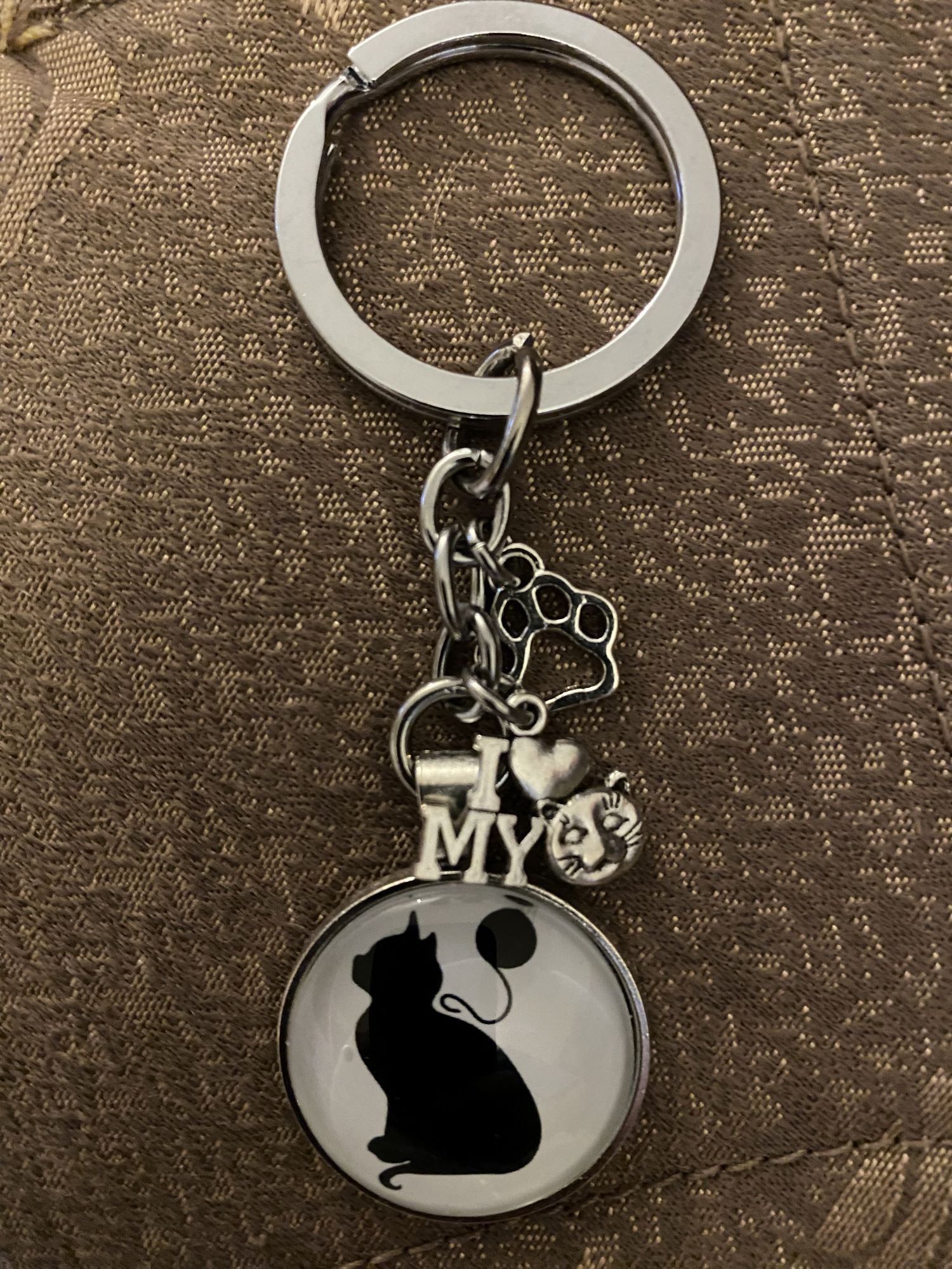 Cat Lover Glass Cabochon Keychain with two charms