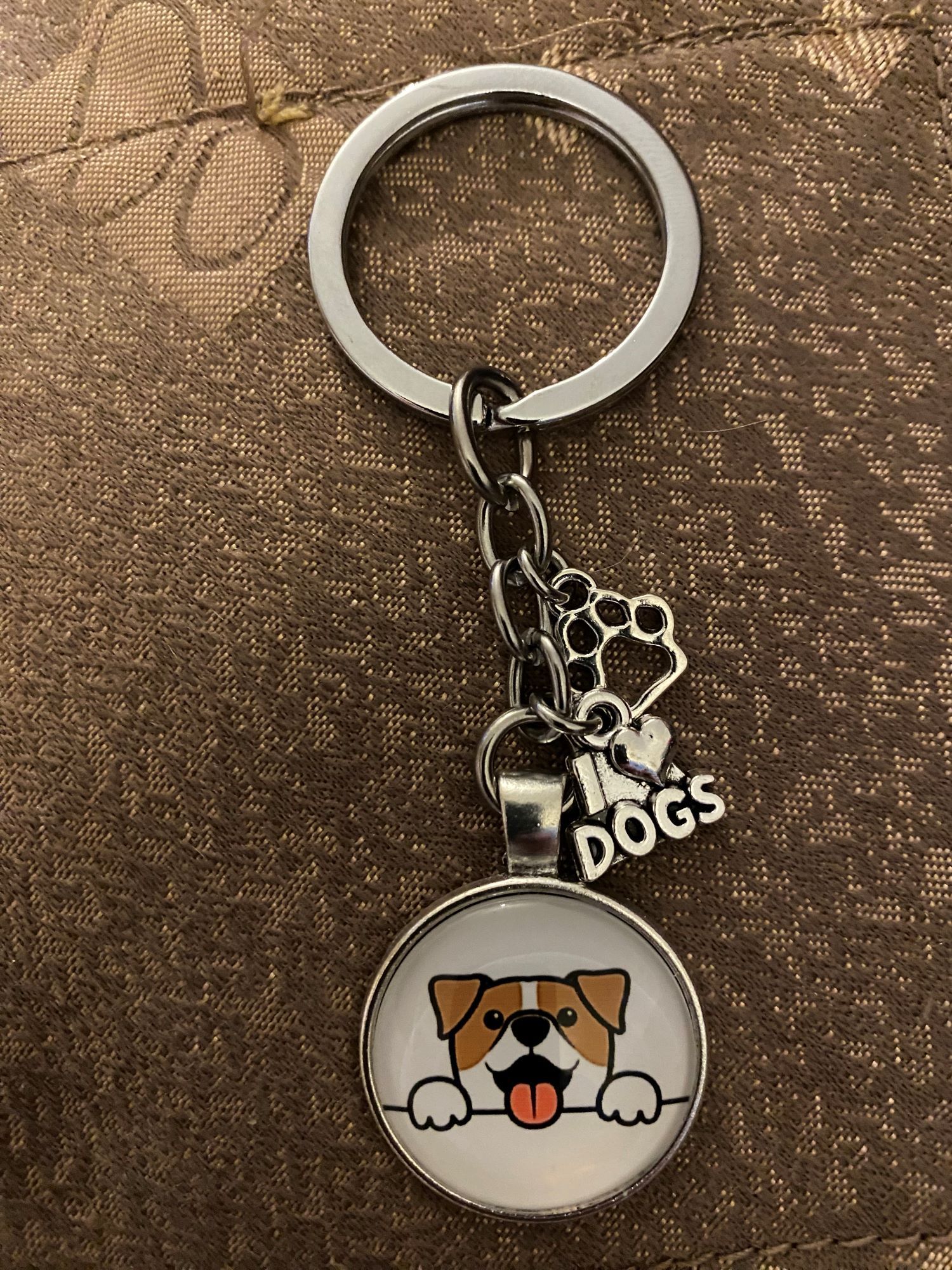 Dog Lover Glass Cabochon Keychain with two charms