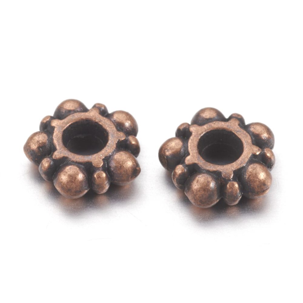 Tibetan Style Daisy Spacer Beads, Lead Free & Nickel Free, Flower, Red Copper, 5.8mm, Hole: 1.5mm