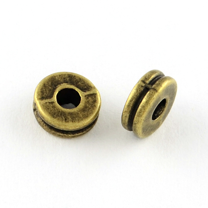 Tibetan Style Flat Round Alloy Spacers Beads, Cadmium Free & Lead Free, Antique Bronze, 6x3mm, Hole: 1.5mm
