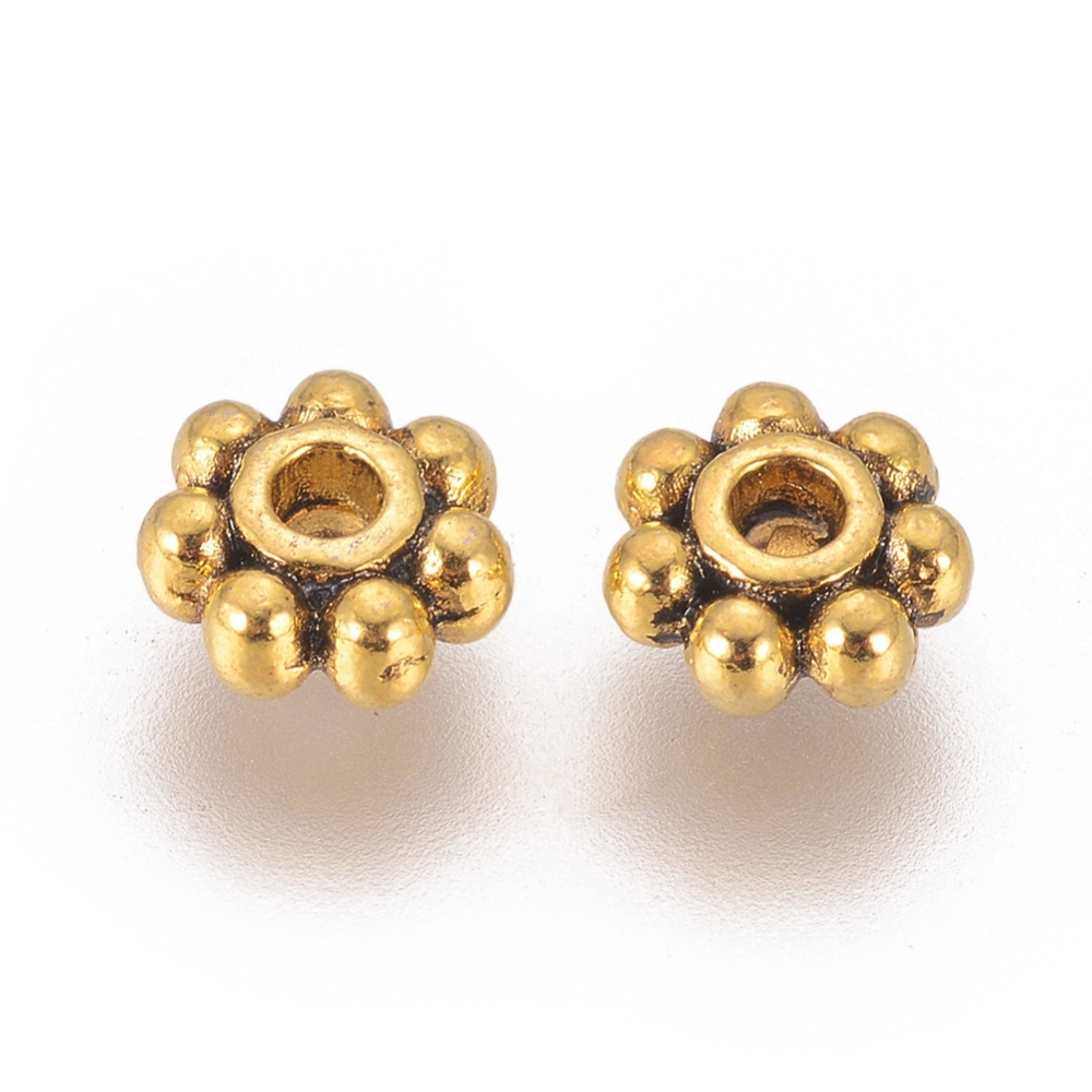 Tibetan Style Alloy Beads, Flower, Antique Golden, Cadmium Free & Nickel Free & Lead Free, 3x1mm, Hole: 1mm