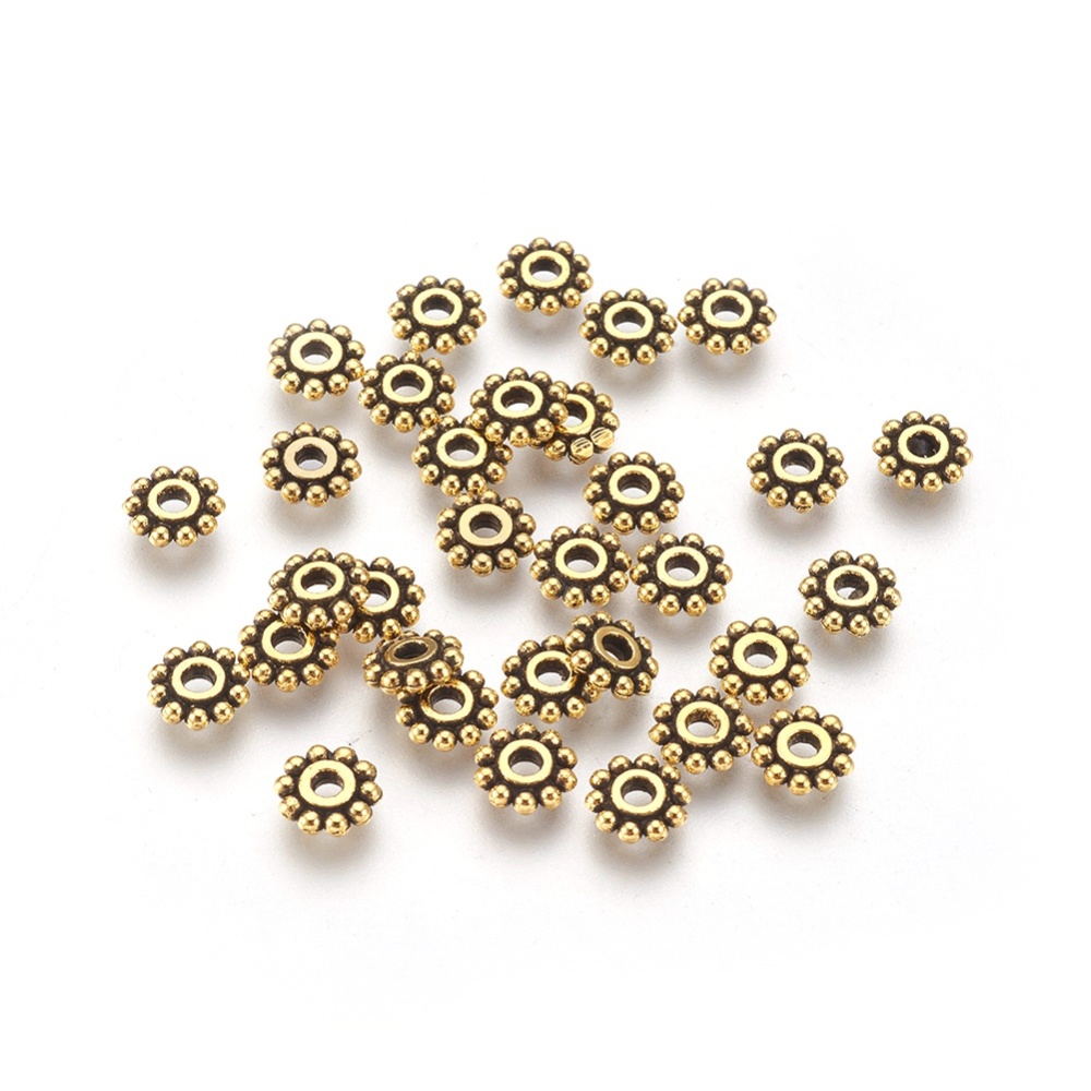 Gear Tibetan Style Alloy Spacer Beads, Lead Free & Cadmium Free & Nickel Free, Antique Golden, 6.5mm, Hole: 2mm