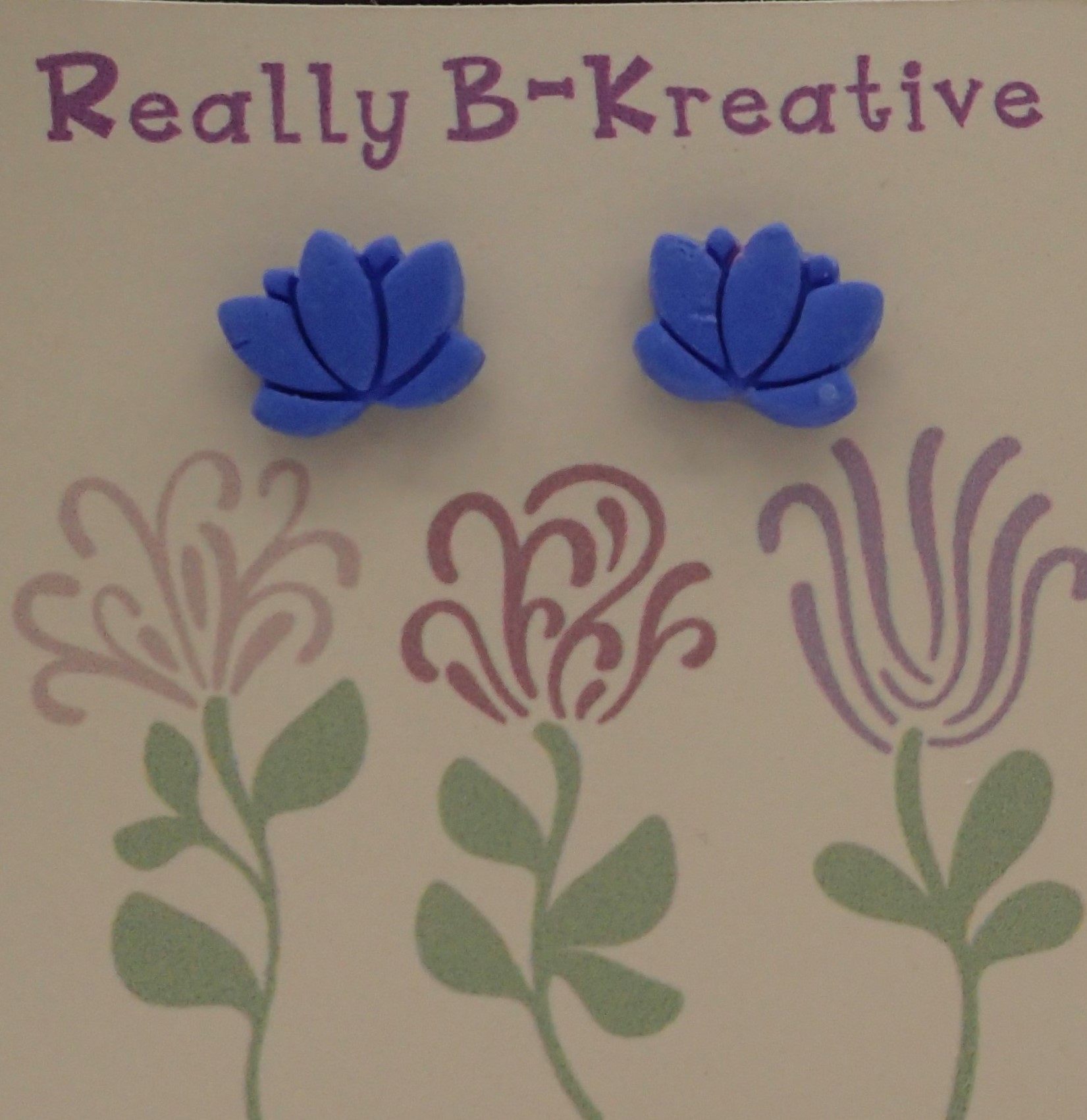 Flower Stud (Lotus) Polymer Clay (Blue)