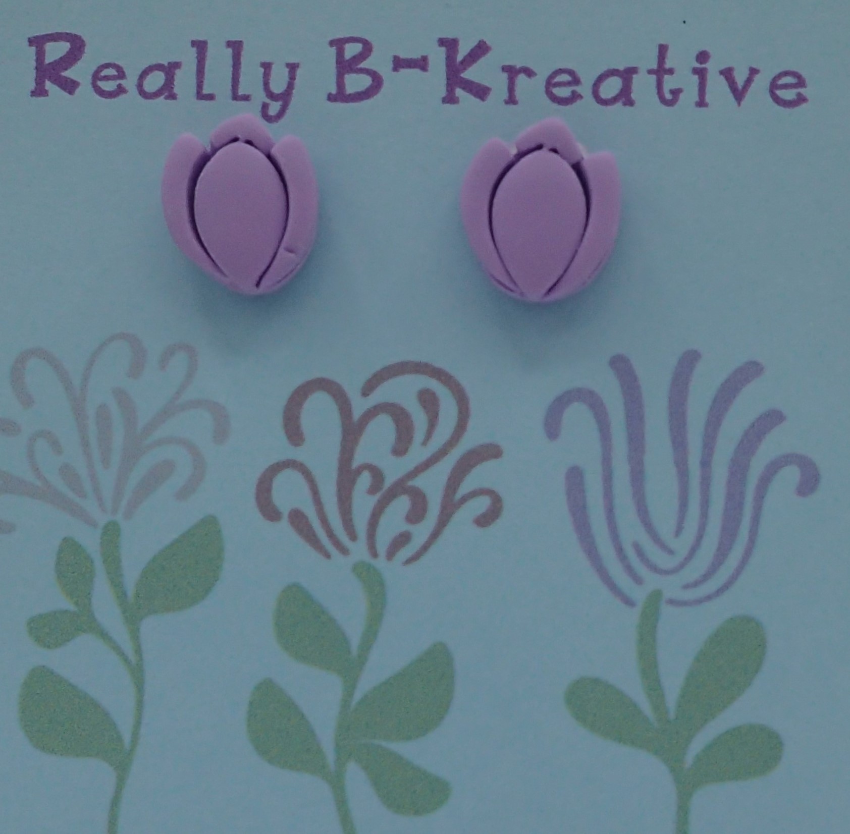 Flower Stud (Tulip) Polymer Clay (Purple)